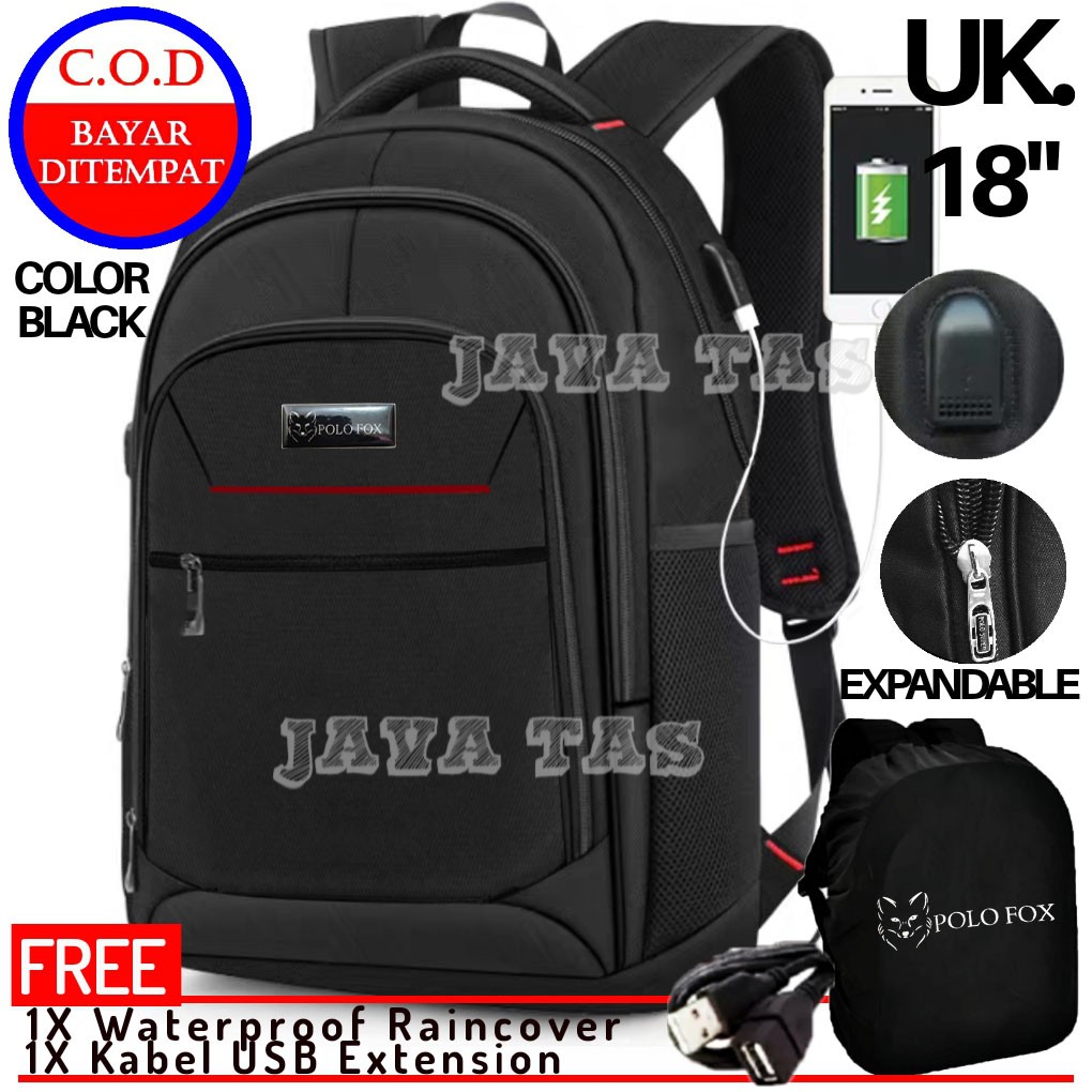 Tas Ransel Laptop Pria Wanita Polo Fox Expandable 18 Inchi Gratis Cable Usb Dan Pelindung Hujan Shopee Indonesia