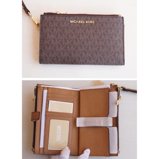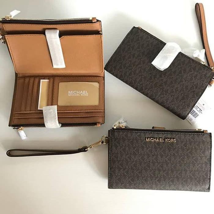 Dompet Wanita Dompet Michael Kors Original Mk Js Double Zip Wristlet Sign Brown A Shopee Indonesia
