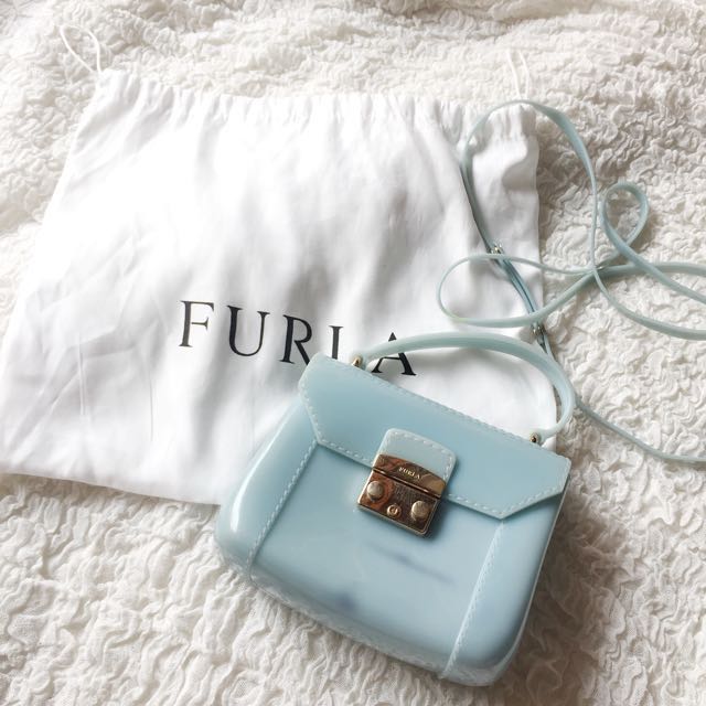 Furla Jelly Mini Baby Blue Sling Bag Fesyen Wanita Tas Dompet Di Carousell