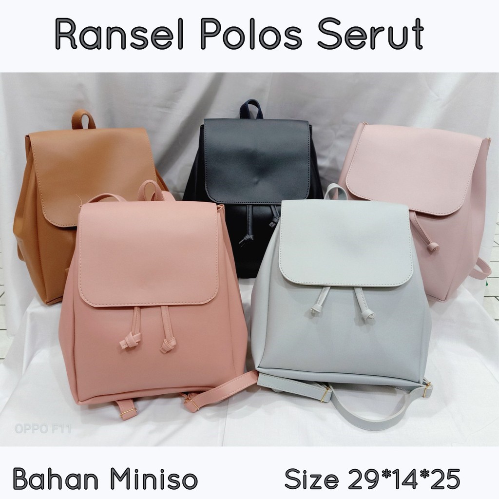 Tas Ransel Wanita Backpack Fashion Miniso Serut Polos Shopee Indonesia
