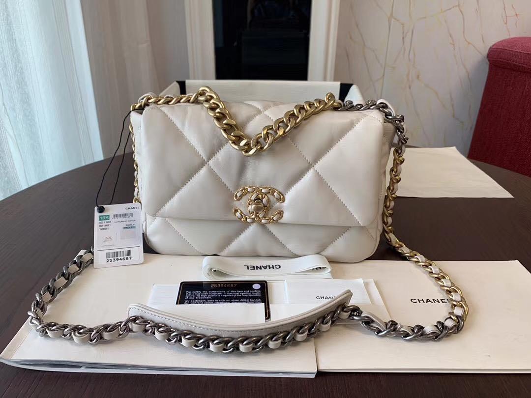 Chanel 19 Flap Bag White Size 26 Mirror 1 1 Barang Mewah Tas Dompet Di Carousell