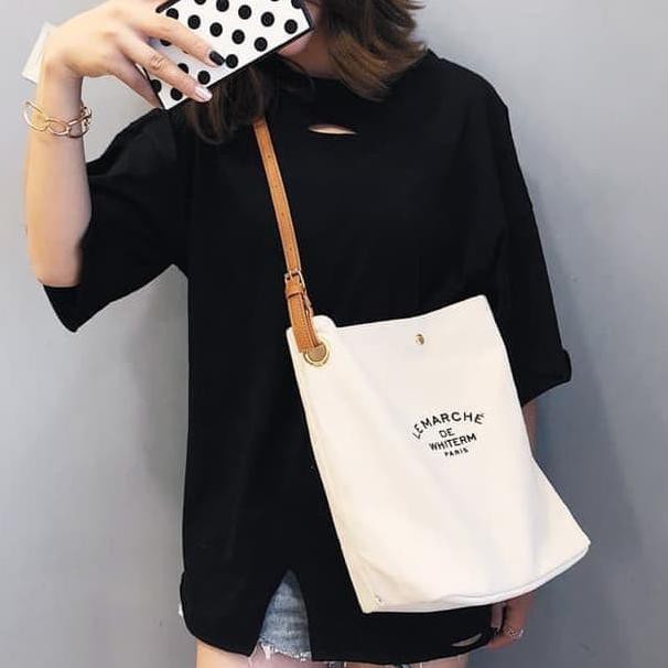 Termurah Moc Do96ts Tas Wanita Le Marche Canvas Sling Bag Totebag Estetik Style Aesthetic Korea Bag Shopee Indonesia