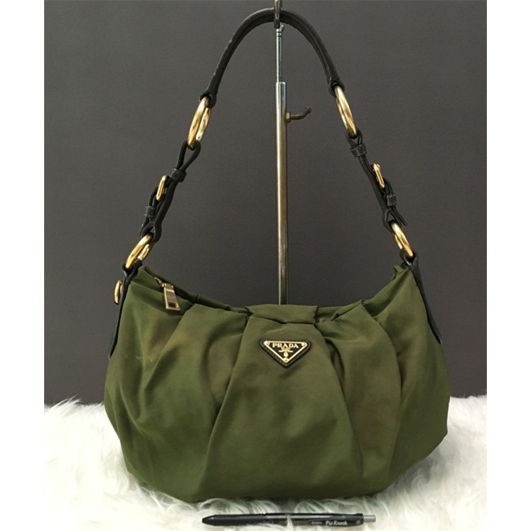 Tas Wanita Branded Prada P263 Green Nylon Hobo Second Original Shopee Indonesia