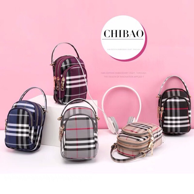 Ori Tas Wanita Import Chibao Mini 240212 Jinjing Selempang Slingbag Motif Kotak Parasut Shopee Indonesia
